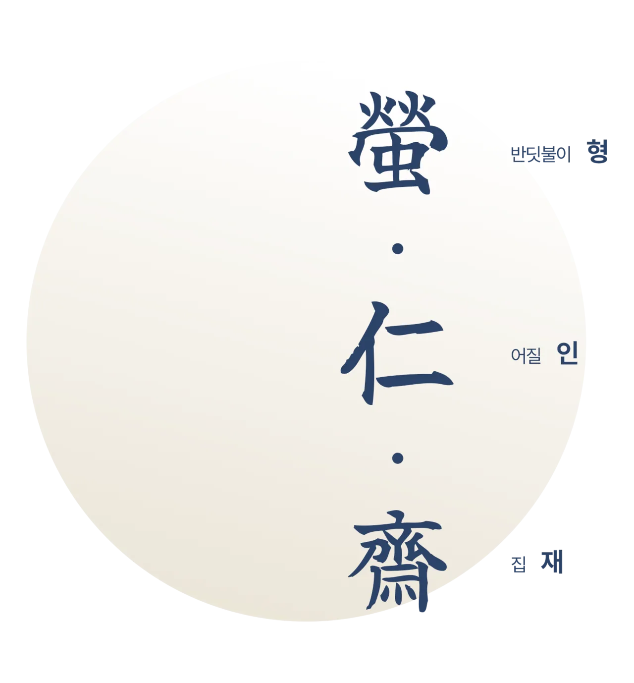 형인재 한자 뜻풀이 — 螢(반딧불이 형) 仁(어질 인) 齋(집 재)