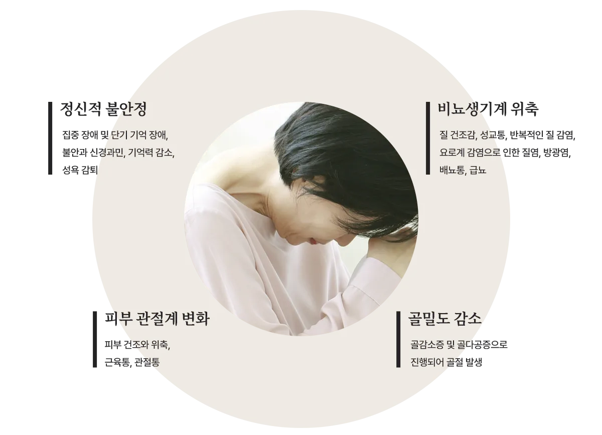 갱년기에는 여성 호르몬의 분비량이 급격히 감소하며